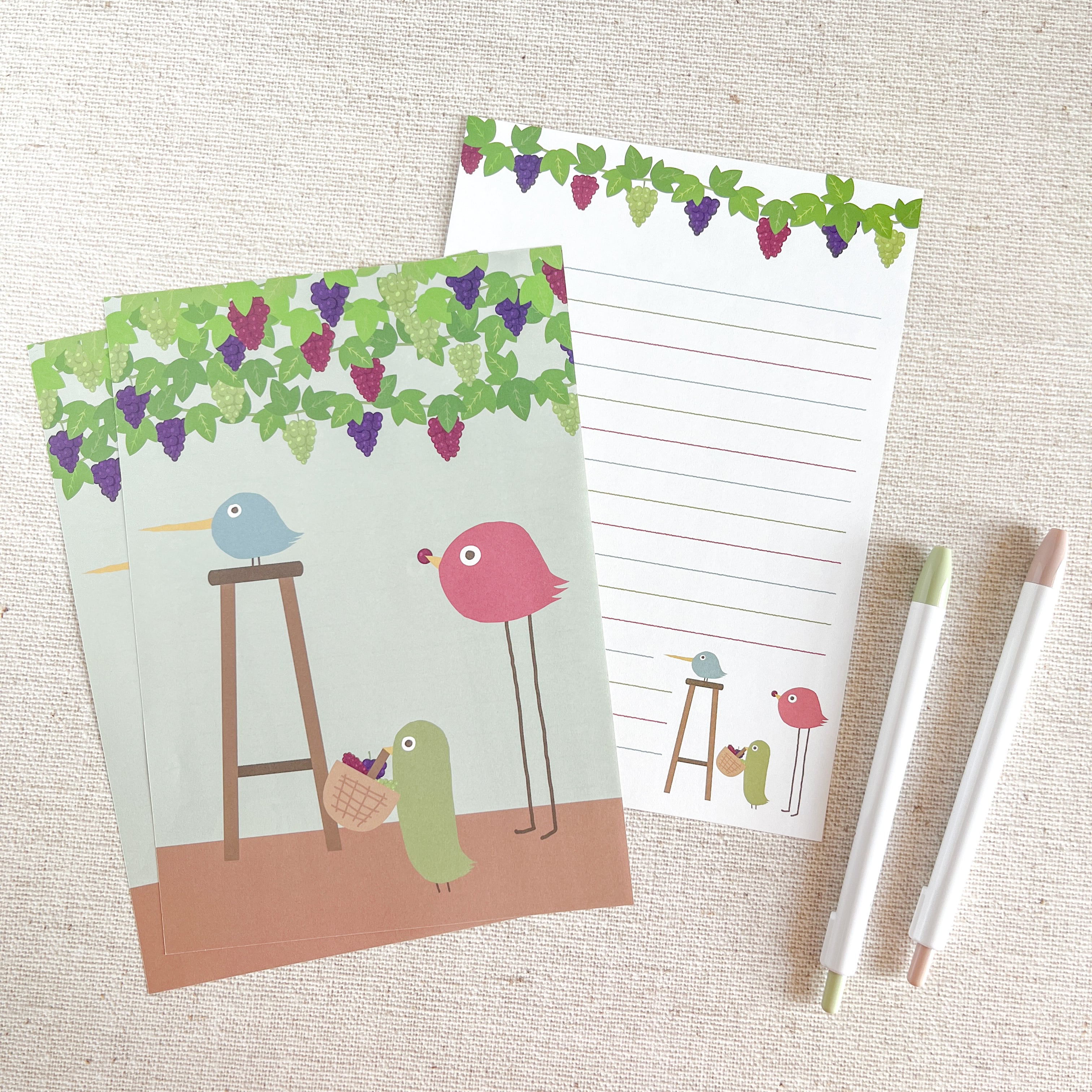 【レターセット】とりお・ざ・とりーずのぶどう狩り