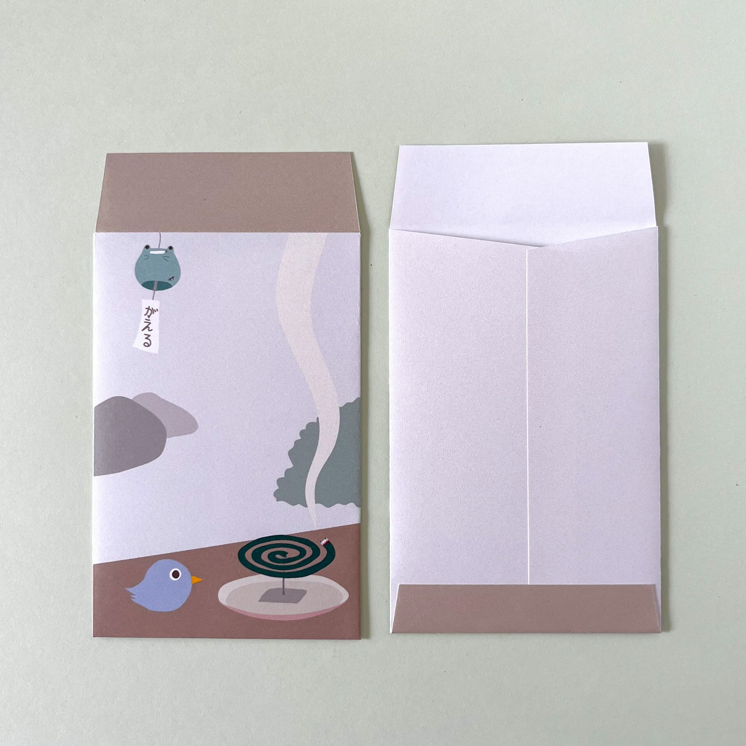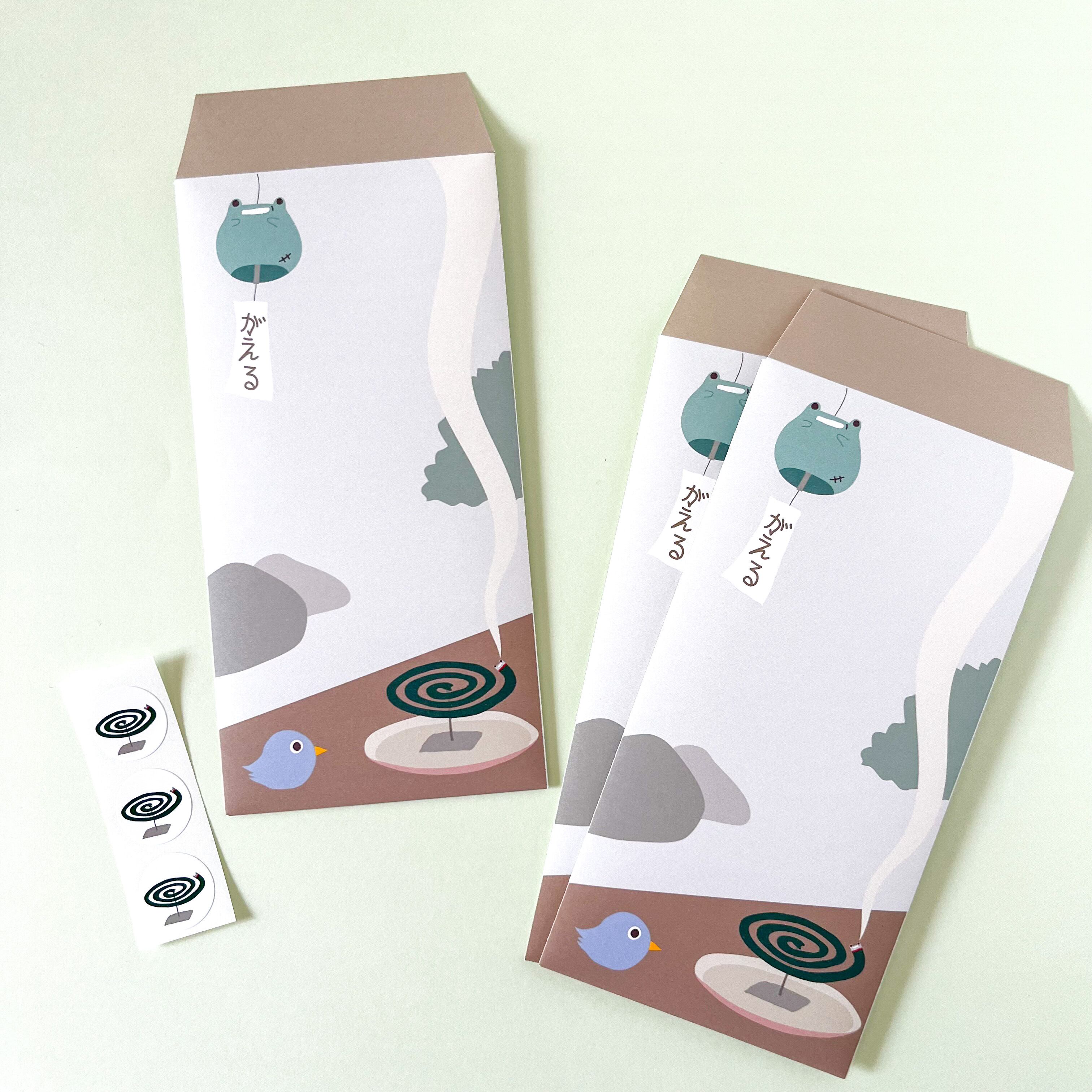 【ポチ袋・シール付き】がえるの風鈴と蚊取り線香【サイズが選べます】