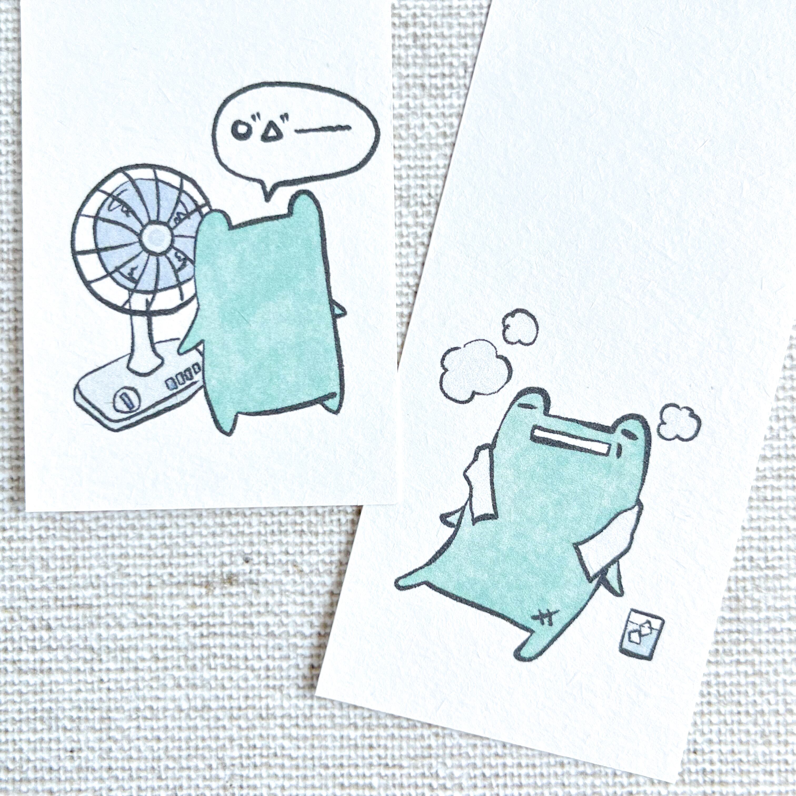 筆と水彩風のゆるっとした絵柄のしおりのセットです。