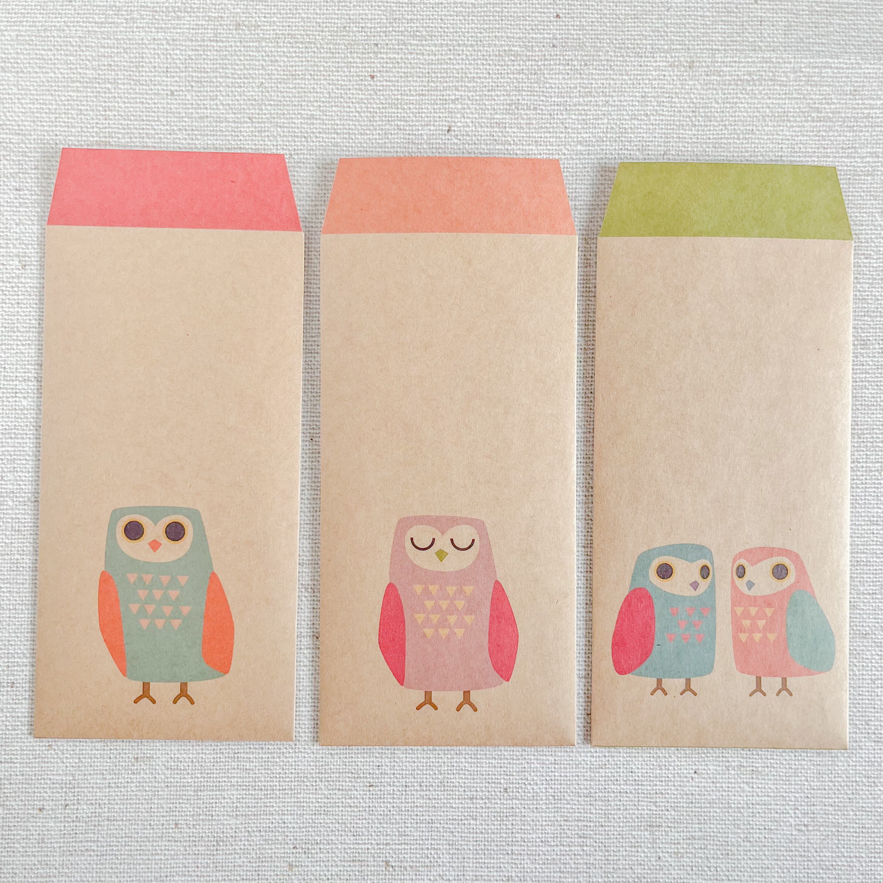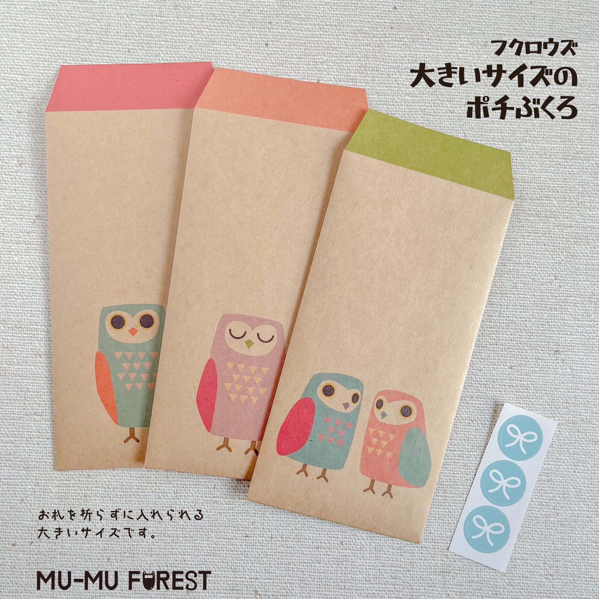 【大きいサイズのポチ袋】フクロウズ【3枚入り・シール付き】